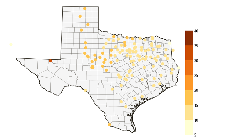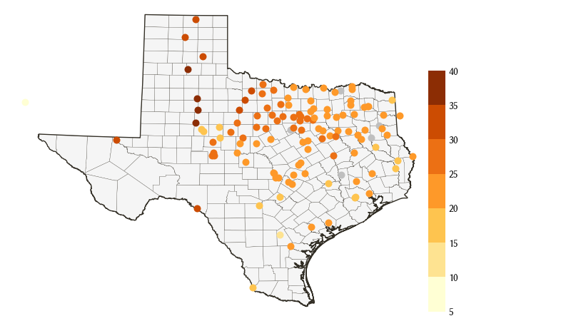 The May‒July seasonal reservoir evaporation forecast is an experimental forecast. It is primarily meant to be an information source to aid the implementation of drought contingency and emergency management plans. The TWDB provides information via this web site as a public service. Neither the State of Texas nor the TWDB assumes any legal liability or responsibility or makes any guarantees or warranties as to the accuracy, completeness, or suitability of the information for any particular purpose.